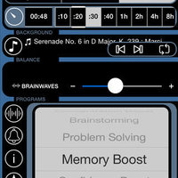 - Automatic saving of preferred brainwave entrainment program and ambient background sounds.