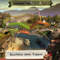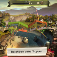 In the siege level, your bridge is bombarded by enemy catapults. Strengthen your bridge so that it doesn't collapse, and protect your own troops on the bridge with a bridge roof.