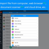It can import files from Camera, Photo Albums, PC/Mac(via Wi-Fi or iTunes), Email attachments, GoogleDrive, Dropbox,SkyDrive,Box and so on. All files are saved to your deivce locally so you can enjoy reading them anywhere!