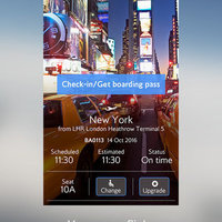 Your home screen is your personal gateway into the BA app. Themed around your next destination, it will give you easy access to important information surrounding your flight, including your mobile boarding pass.