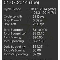• Earning/Spending/Budget Left for Cycle