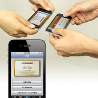 By holding out your iPhone to another iPhone user with "Business Card Manager", you can exchange your business card set inside the "My Business Card" with your partner. The transmission for the card exchange is done through Bluetooth so even in the offline mode, you can exchange business cards safely and swiftly.