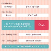 - Enter the (old) tin size and cooking times suggested by your recipe