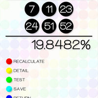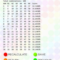 - Store up to 10 manual or calculated combinations to run lottery simulations.