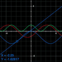 Advanced graphing functions: simultaneous graphs, find points on the graph and show tangents. E-mail your equations and graph image.