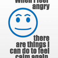 The app also includes a simple social story with line drawings about anger. The social story talks about feeling angry and things you can do, like counting to ten, breathing deeply and taking a break, to calm yourself down.