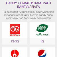 Candy нь хамгийн сүүлийн үеийн үйлчилгээ болон бүтээгдэхүүнүүдийг хөнгөлөлттэй үнээр аваад зогсохгүй хайртай дотны хүндээ, найздаа бэлэглэх боломжтой гар утасны аппликэйшин юм. Хэрэглэгч та хамгийн сүүлийн үеийн бүтээгдэхүүнүүдийг өөрийн цуглуулсан Candy оноогоор, MobiXpress – р болон цахим банкуудаар худалдан авах боломжтой.
