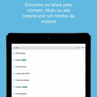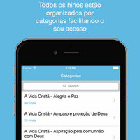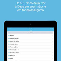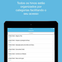 Através da tela 'Hinos', você pode organizar os hinos alfabeticamente ou ordenar pelo número do hino. Os Hinos ainda podem ser localizados pesquisando por palavras no título do hino. Os hinos também são organizados por categorias.
