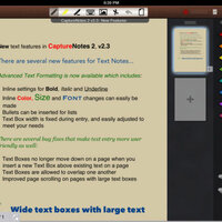 With the release of V2.0, CaptureNotes 2 becomes a sharing powerhouse... Users can share Binders and Notebooks via Email, Evernote, iTunes or Dropbox. All elements captured within any Notebook can be shared -- audio, typing, drawing, photos, Flags, PDF imports, etc. A shared Notebook can be viewed by any other user of CaptureNotes 2, V2.0 exactly as you have created them.