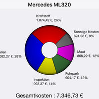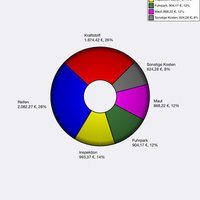 The application updates the overview and detailed statistics of your expenses: cost per spending category, cost per kilometer or daily cost. Non financial data, such as the change in mileage and average fuel consumption can also be calculated, and displayed in brief or in detail.