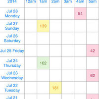 * Log Book Chart displays all the blood glucose entries for each day in 1 hour increments. 30, 60 and 90 day views with filter for highs and lows.