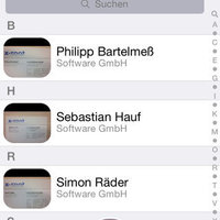 Carry all your business partners' contact information with you all the time – clearly arranged and complete. With Cardreader's own address book interface you can edit scanned business cards, manage existing contacts and even do without the visually reduced standard address book coming with the iPhone.