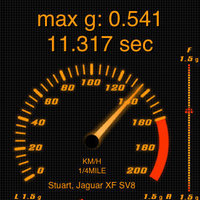 CarTrack tells you real-time how fast you are going, how much acceleration (g-force) you are feeling and what your test time is. After the test, you can look at detailed, zoomable graphs of the entire test run. They measure horsepower and distance traveled, in addition to speed, acceleration and g-forces. All of them in metric units (meters, km/h) or imperial units (yards, mph) as you desire.