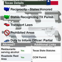 This application puts all the power in your hands. You can easily access and review the relevant firearm laws and gun prohibitions for every state. This app shows you the actual gun laws, so you do not have to rely on someone else's interpretation. Find the prohibited locations, transportation rules, permit process, and more for every state! Also provides direct links to the laws themselves, so you can research any open questions. It includes the pertinent federal laws. For specific locations (such as restaurants serving alcohol), see the quick allowed status, then click for details and laws. Also includes "duty to notify" laws for each state (when available) for contact with a police officer, such as a traffic stop. The key information does not require internet connection; it’s located right on your phone!