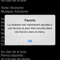 Si vous ne trouvez pas la chanson que vous recherché, vous avez aussi la possibilité d'ajouter une chanson t de la voir sous Favoris. Elle sera simultanément envoyé à une base de données et peut être inclues dans le recueil de chansons de sorte que tout le monde puisse en profiter.