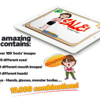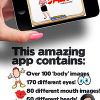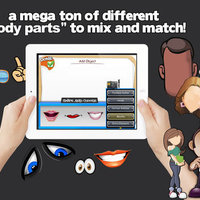 • Easy "drag and drop" method. Pinch, drag and spin each graphic element to change size. Drag and drop a head, eyes, mouth and hair onto a body pose.
