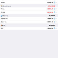 Create Multiple Accounts (Checking,Savings,Debit,Cash etc.) with Custom Grouping.