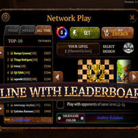 Play Checkers Online – a special mode where you can compete with other players. Gain new levels and ranks, climb up in leaderboards (daily, weekly and global) or play in special Tournaments with awards. Use your awards to obtain and customize design of your Checkers pieces. Checkers Online mode is completely free. It uses «energy» which can be obtained in many ways: as daily rewards, defeating your opponents or wining in the tournaments.