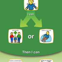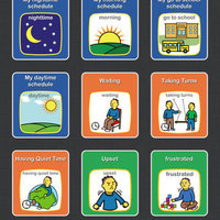 The Feelings Board provides a tool for helping children understand and express emotions. The user can begin by reading the companion book, When I Get Upset, to provide an example of how the child might recognize an emotion and choose a coping strategy. On the Feelings Board, the user can then help the child indicate how they are feeling from a range of options, select a coping strategy, and then request an activity which would likely help them feel better or re-engage with others.