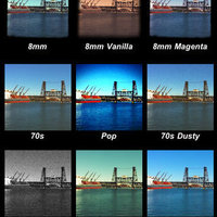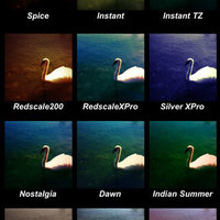 12 effects including Spice, Instant, Instant TZ, Redscale200, RedscaleXPro, Silver Xpro, Nostalgia, Dawn, Indian Summer, Cappuccino, HelgaV, Pink