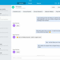 Spaces are virtual meeting rooms only radically better. Meet your project team in a space and see your notes and agenda from last time you visited. Check in anytime, the space is always available.