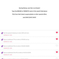 • Sort coupons by categories like clothing, shoes, department stores and electronics.