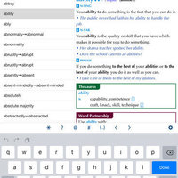 - ”Jump” feature – touch any word anywhere in the dictionary to go to the definition