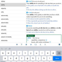- ”Jump” feature – touch any word anywhere in the dictionary to go to the definition