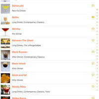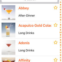 • searchable cocktail list by alphabetical order, categories, ingredients, glass;