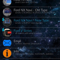 The app is a calculator codes for radio and navigation systems in vehicles factory-fitted Ford. To generate codes for radio serial number V and navigation systems required !!! absolute correct input two numbers !!! from the sticker (Serial No, Part No.) or scan barcode from side label.