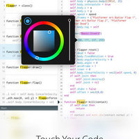 We think Codea is the most beautiful code editor you'll use, and it's easy. Codea is designed to let you touch your code. Want to change a color, or an image? Tapping will bring up visual editors that let you choose exactly what you want.