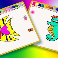 Coloring Book For Children or Kids - Finger Painting - Doodle To Draw Sea Animals