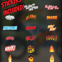 Arm yourself with the best graphic effects, 105 inspiring layouts, 374 hand-drawn* comic Stickers, 12 caption and text tools, auto-content from Facebook and Flickr, and you have the superpowers to Rule the Universe - in Your stories!