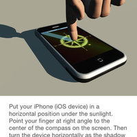 Compass is a measuring instrument which indicates the cardinal points under the sunlight. Put your finger in the middle of the compass and line it's shadow up with the app's shading.