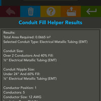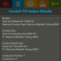 The best conduit fill calculator on the app store! This application is perfect for the field professional and the office worker. Conduit Fill Helper will assist you in doing a conduit fill calculation, just add each conductor to the list and select the conduit type to receive the conduit size per the NEC. This calculator also includes a custom conductor size for cabling and conductors that are not included in the NEC.