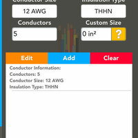 - Custom conductor size: Input a cable or conductor area that is not available in the NEC. Great for communication cabling!