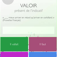 With Conjuguons, the French conjugation becomes accessible for everyone! True reference of the French conjugation, the application provides a list of more than 2,000 verbs at all times and in all forms. You can also test your knowledges of the French conjugation with Quiz