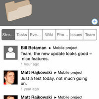 • Projects include status updates, tasks, calendar events, issue tracking and photo sharing.