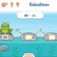 The frog needs help to get across the river. Every correct answer brings him to the next stone until he finally reaches the riverbank on the opposite side.