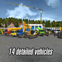 Playing the Construction Simulator 2014 you can take over the control of 14 construction machines which are true to the originals in high-quality 3D graphics. Excavate the foundation of a one-family house with realistic machines, operate a concrete pump which is as high as a house to cast concrete into the wall formwork of an industrial hall or place giant roof trusses with a mobile crane and show that you can keep a steady hand – more than 300 tasks promise more than 20 hours of gaming fun.
