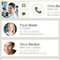 This enhanced address book makes it easy to browse, find, and connect with your friends, family, colleagues, and other contacts. Entries are elegantly shown with name, company, phone number, email, and photo – all done automatically by utilising contact information from your existing address book and your Facebook contacts. In-built "Smart Lists" automatically assign your contacts into groups based on shared attributes. Without any manual grouping required, Smart Lists batch together contacts by company, city, country, zip code and birthday, amongst many other traits.