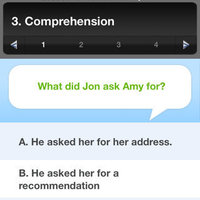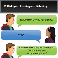 Each English lesson has tasks in 5 important skills – Conversation Listening, Conversation Reading, Comprehension, Vocabulary, and Sentence Completion. An Idiom Dictionary with Audio Pronunciation is also included.