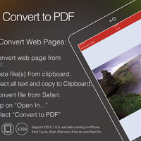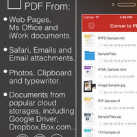Convert to PDF Pro is an application which allows converting Word, Excel, PowerPoint, Pages, Numbers, Keynote files, HTML pages and Photos to PDF format.