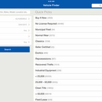 • Search over 100,000 vehicles in online auto auctions by location, date, and vehicle type