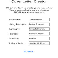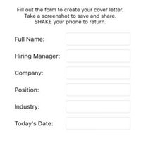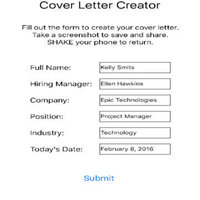 Get this work done in 10 seconds all on mobile. No more versions, duplicates, desktop storage, laptop batteries, nothing nada zip. Just download Cover Letter Creator, enter in your data, and take a screenshot of your new cover letter. Send and share without limit.