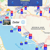 10) Complete marine forecast for Adriatic sea. There are two types of forecast: Locations forecast (using map view) and forecast represented with classic maps. Locations forecast allows you to access wave forecast or meteogram by pressing certain location on map view. Second type of forecast allows you to preview maps with mean wind, wind gusts, cloudiness and precipitation for Adriatic sea for next 72 hours.