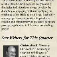 Daily Bible Study provides a Bible-based, Christ-focused daily reading that helps individuals on the go develop the discipline of engaging with and applying the teachings of the Bible to their lives. Each daily reading opens with a question to ponder, a reading and commentary on the daily Scripture passage, application to life, and a concluding prayer.