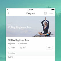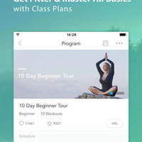 • Workout plans focused on beginners, weight control, body sculptor, glowing skin, strength & flexibility, inner shine, etc.