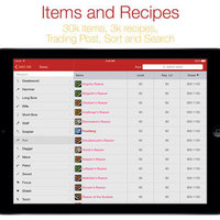 * Items & Recipes 50 000 + items & recipes. Relationships between recipe - ingredient - produced item. Completely info about each item and recipe (bonuses, characteristic, ingredients, stats, description etc). You can fast search and sort items, use different filters like rarity, item level, required level etc and check current item price, sales and offers (updated in real time).