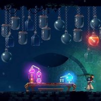 Dead Cells is described as a "roguevania", a combination of procedurally-generated roguelike games and action-exploration-based metroidvania games. The player controls a mass of cells that occupy and control the body of a deceased prisoner at the start of each game. As they explore a series of dungeons and fight the creatures within, they collect weapons, armor, abilities, power-ups, and money. Some enemies will also drop cells when defeated, which can be used to obtain permanent power-ups such as additional health potions or new items that can be bought or found in later runs. These cells can only be spent at the end of a dungeon section; if a player dies before then, they lose all collected cells.